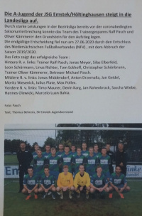 A Junioren JSG 1: Spielberichten Die A Jugend der JSG Emstek/Höltinghausen steigt in die Landesliga auf Die A Jugend der JSG Emstek/Höltinghausen steigt in die Landesliga auf. Erstellt: 02. Juli 2020 Vorheriger Beitrag: 1. A-Jugend der JSG Em/Be/Hö erreicht Vizemeisterschaft in der Landesliga. Zurück Nächster Beitrag: Emstek/Höltinghausen nutzt den Heimvorteil Weiter