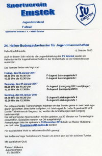 Auch in diesem Jahr möchte die Jugendabteilung des SV Emstek wieder ein Hallenturnier für Jugendmannschaften in der Dreifeldhalle an der Ostlandstrasse ausrichten.