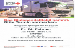 Das DRK-Blutspendemobil steht am Freitag, 24.02. von 16:00 bis 20:00 Uhr vor der Dreifeldhalle an der Ostlandstraße.