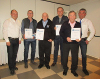 Für 25 Jahre Treue zum Verein wurden mit Urkunde und bronzener Nadel geehrt: In Anwesenheit Ludger Klövekorn und in Abwesenheit Martin Niemöller, Helmut Siemer und Karin Tromp.