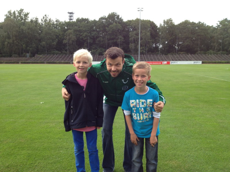 Wir hatten die einmalige Gelegenheit, einen Tag bei Hannover 96 zu verbringen. Morgens haben wir das Training der Profis - bei der AWD Arena – verfolgt, einige Autogramme und sogar Fotos der Spieler und des Trainers Mirko Slomka ergattert. Dann sind wir zum Eilenriedestadion von 96, das 1921 erbaut wurde, gefahren.